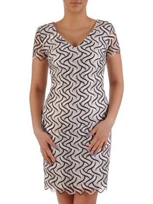 Koronkowa sukienka w wyszczuplający wzór, prosta kreacja wyjściowa 20144