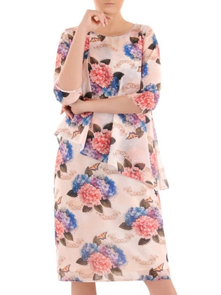 Elegancka sukienka w kwiaty z ozdobnie wyciętymi rękawami 33862