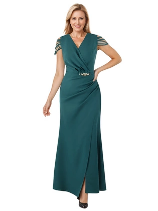 Wyszczuplająca sukienka na wesele i sylwestra – elegancka z kopertowym dekoltem i rozcięciem 40710