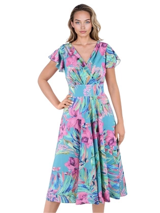 Sukienka kopertowa, modna kreacja w kwiaty 35544