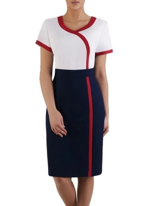 Sukienka z imitacją żakietu, prosta kreacja z ozdobnym kołnierzem 23161
