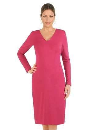 Prosta sukienka z tkaniny, malinowa kreacja z dekoltem w serek 34224
