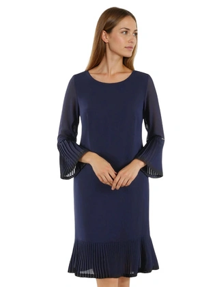 Elegancka sukienka wyjściowa w granatowym kolorze z ozdobnymi plisami 38724