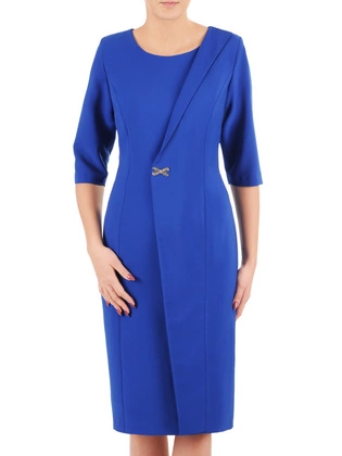 Elegancka chabrowa sukienka, kreacja z ozdobnie wyciętym przodem 37109