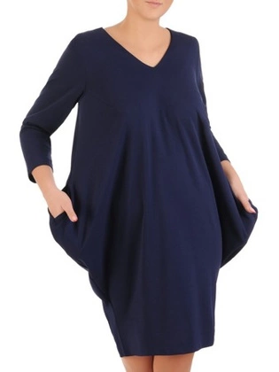Luźna, granatowa sukienka maskująca wszelkie niedoskonałości 27956