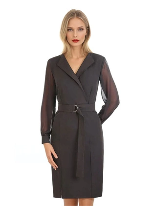 Elegancka sukienka z kopertowym dekoltem i szyfonowymi rękawami 31815