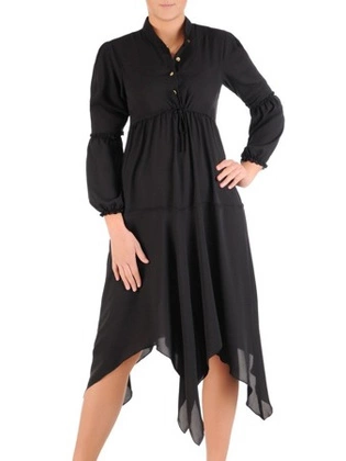 Czarna, asymetryczna sukienka, kreacja z podwyższonym stanem 23241