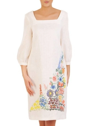 Lniana sukienka damska z kwiatowym nadrukiem 32485
