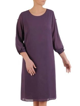 Trapezowa sukienka z szyfonu, kreacja z perełkami na rękawach 25807