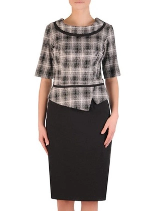 Modna sukienka w kratę 15569, wiosenna kreacja z ozdobnymi wstawkami