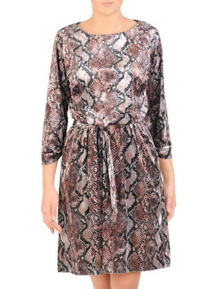 Rozkloszowana sukienka w zwierzęcy wzór, wyszczuplająca kreacja z paskiem 30742