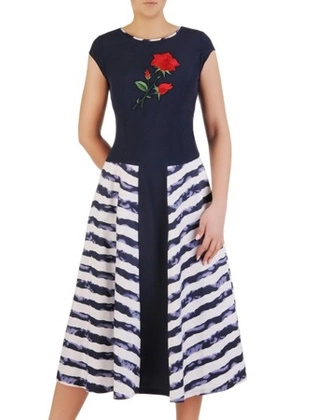 Rozkloszowana sukienka w modne, marynarskie pasy 19838