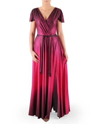 Kopertowa sukienka z ozdobnymi rozcięciami na rękawach 36855