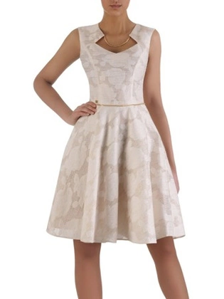 Sukienka z tkaniny, rozkloszowana kreacja w oryginalnym wzorze 36071