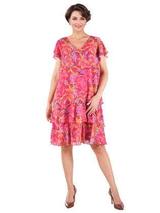 Amarantowa sukienka damska midi z falbaną – elegancka kreacja z szyfonu na wesele 39984