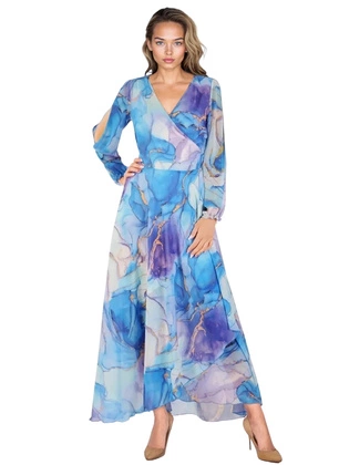 Szyfonowa, rozkloszowana sukienka z wyszczuplającymi zakładkami 30141