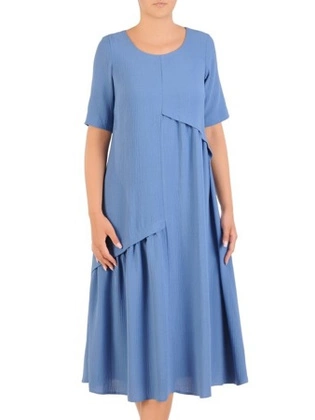 Luźna sukienka z przewiewnej tkaniny w modnym odcieniu niebieskiego 30214