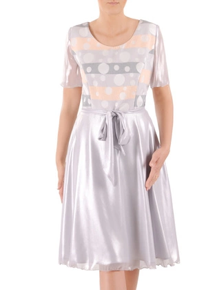 Sukienka z paskiem, rozkloszowana kreacja w groszki 20383.