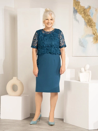 Kostium damski, elegancka sukienka z koronkowym bolerkiem 23145