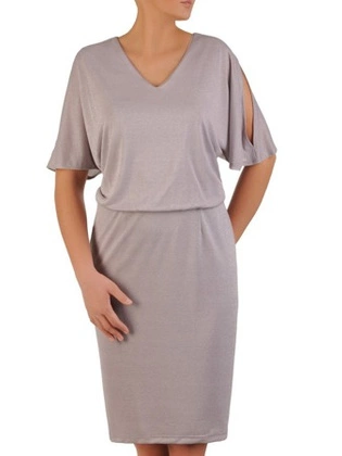 Połyskująca sukienka z luźnym topem, kreacja maskująca brzuch 23685