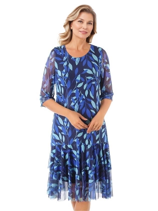 Sukienka letnia plus size, zwiewna kreacja midi z ozdobnymi falbanami 38367