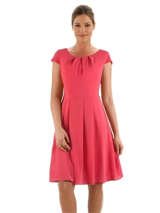 Rozkloszowana sukienka Izaura III, kreacja w kolorze koralowym.