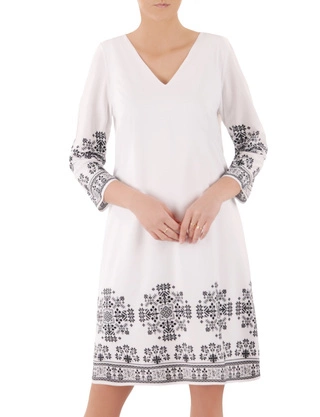 Biała sukienka plus size z nadrukiem haftu 38352