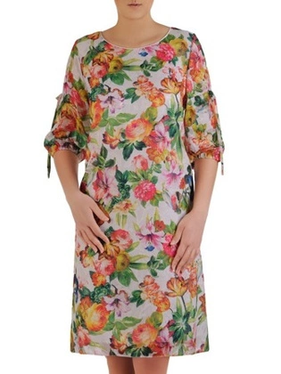 Sukienka w kolorową kratkę Zelmira, wiosenna kreacja z ciekawym nadrukiem