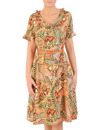 Sukienka w wyszczuplającym wzorze, prosta kreacja z tkaniny 20522.