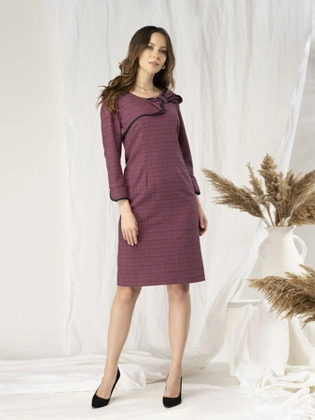 Jesienna sukienka z ozdobną kokardą przy dekolcie 30694
