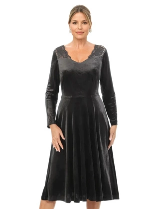 Aksamitna sukienka z koronkowymi wstawkami na ramionach 34829
