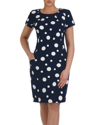 Sukienka z tkaniny, prosta kreacja w geometrycznym wzorze 31875