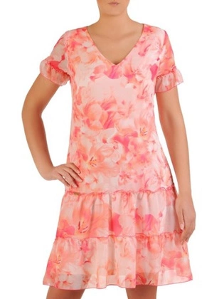 Sukienka z szyfonu, zwiewna kreacja z falbanami 26078
