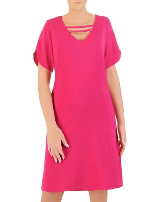 Amarantowa sukienka damska z ozdobnym dekoltem 33116