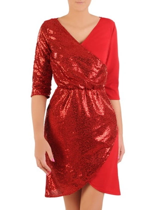 Kopertowa sukienka wizytowa, kreacja z połyskującej dzianiny 22408