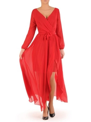 Czerwona sukienka damska, połyskująca długa kreacja 27997