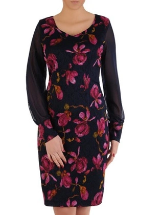 Trapezowa sukienka z koronkowym karczkiem i rękawami 24512