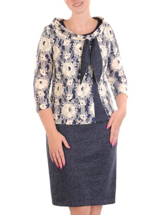 Komplet damski, granatowa sukienka z oryginalnym bolerkiem 33881