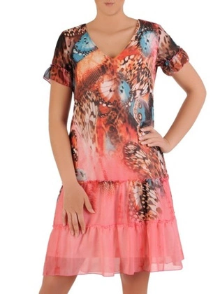 Sukienka z szyfonu, zwiewna kreacja z falbanami 26076