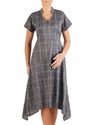 Prosta sukienka z modnymi rękawami, wzorzysta kreacja wizytowa 19448