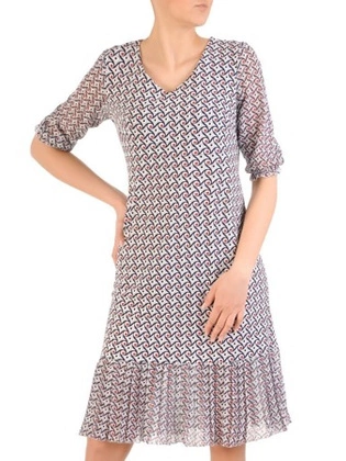 Elegancka sukienka w oryginalny wzór, kreacja maskująca niedoskonałości 29356