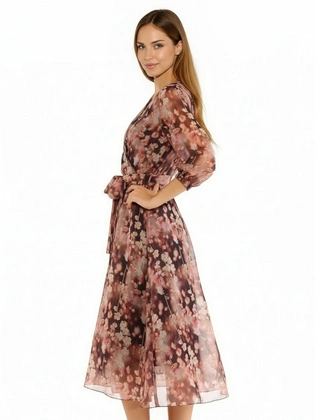 Elegancka sukienka w kwiaty z ozdobnie wyciętymi rękawami 33505