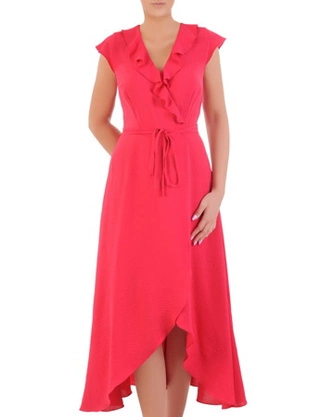 Sukienka kopertowa, asymetryczna kreacja z falbanami 33211