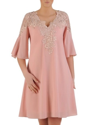 Wieczorowa trapezowa sukienka wykończona modną koronką 25182