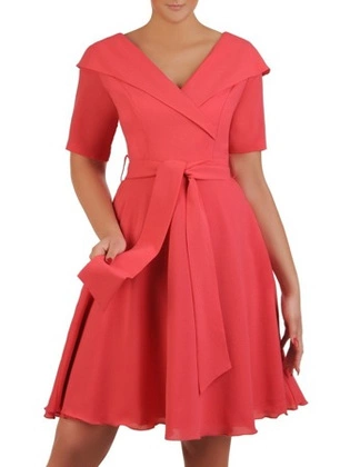 Sukienka wizytowa, koralowa kreacja z tkaniny 21268.