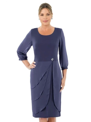 Sukienka plus size na wesele, komunię, granatowa kreacja midi z szyfonowymi rękawami 38228