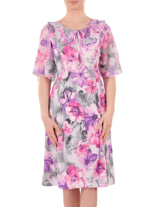 Trapezowa sukienka z ozdobnymi falbanami przy dekolcie 35965