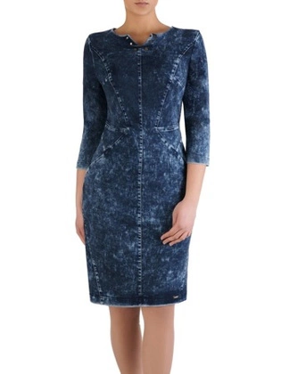 Niebieska sukienka z modnym dekoltem, klasyczna kreacja wiosenna 37967