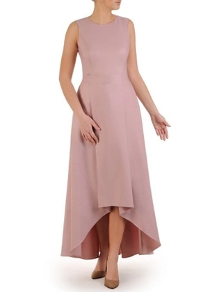 Asymetryczna sukienka wieczorowa, kreacja z ozdobną falbaną 23247
