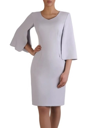 Elegancka sukienka z rozciętymi rękawami 15307, jasna kreacja w oryginalnym fasonie.